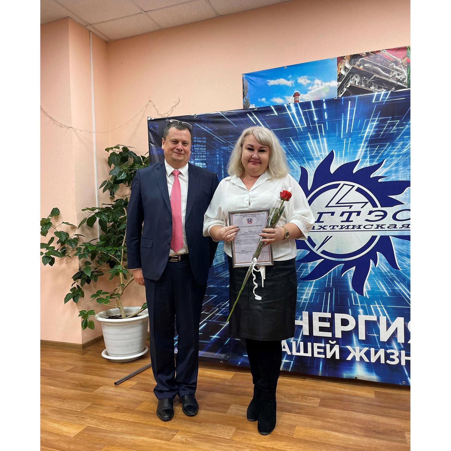 Благодарственные письма регионального министерства промышленности и энергетики Ростовской области за многолетний труд, высокий профессионализм и большой личный вклад в развитие энергетики Донского региона вручены: начальнику электрического цеха Орехову Андрею Ивановичу, слесарю по ремонту парогазотурбинного оборудования Кумскову Сергею Геннадьевичу, машинисту технологических компрессоров Хлибичук Ирине Михайловне, начальнику отдела электрических испытаний Моргунову Виктору Тимофеевичу и мастеру цеха тепловой автоматики и измерений Ситникову Александру Сергеевичу.