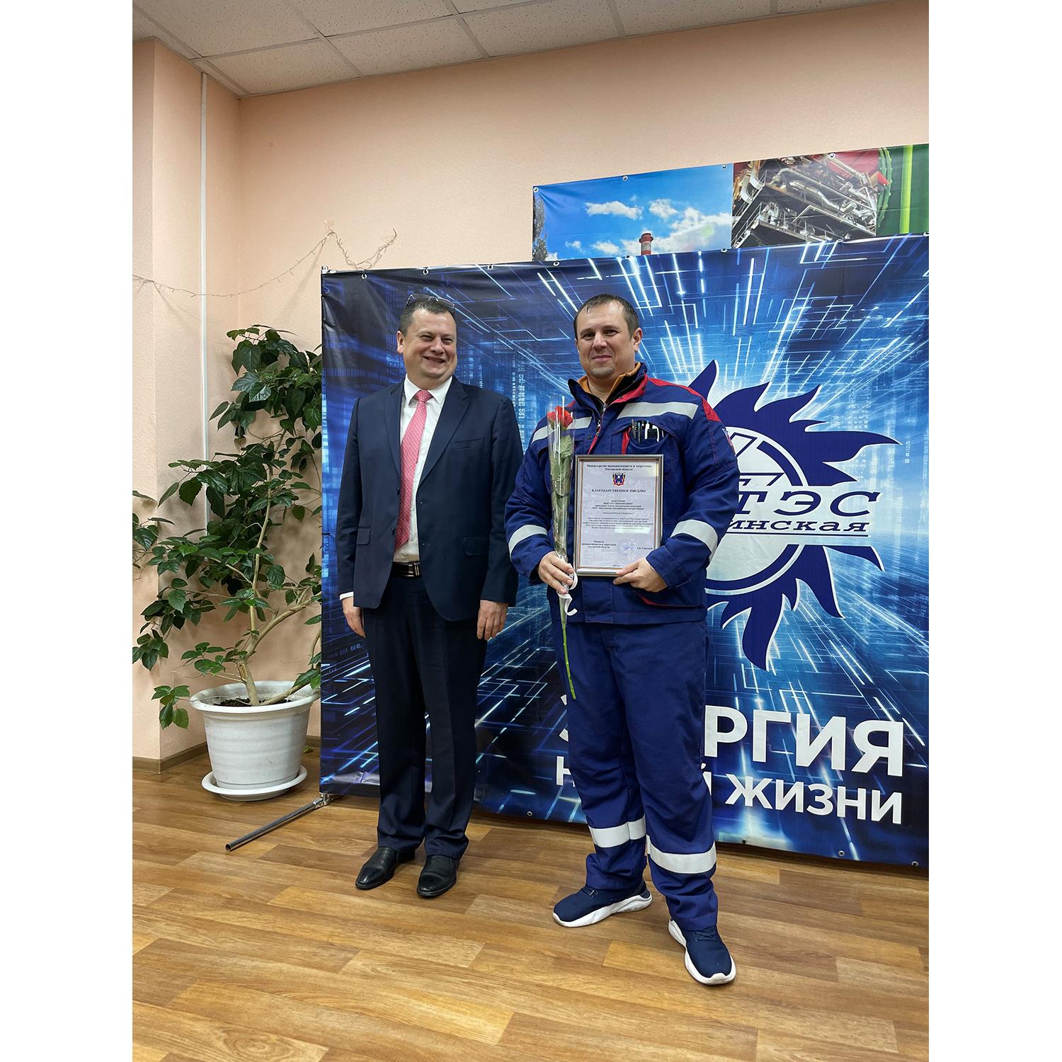 Почётных грамот Министерства энергетики Российской Федерации за личный вклад в развитие топливно-энергетического комплекса и многолетний добросовестный труд удостоены электрогазосварщик Агафонов Александр Сергеевич и инженер Рассадин Игорь Сергеевич.