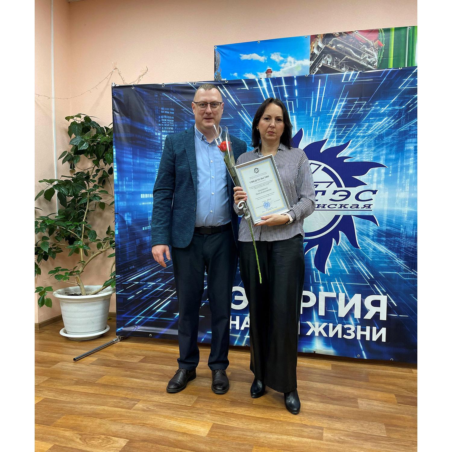 За долголетний и добросовестный труд, высокие показатели в профессиональной деятельности по итогам работы за год Свидетельствами о занесении на Доску почета награждены: инженер-электроник 1 категории Беспалов Михаил Иванович, аппаратчик химводоочистки электростанции Костылева Анна Валерьевна, электромонтер по обслуживанию электрооборудования электростанций Таракин Александр Валерьевич, машинист-обходчик по котельному оборудованию Самодурова Ирина Владимировна, электрогазосварщик Тунда Александр Николаевич, специалист по закупкам Яковлева Дарья Александровна, слесарь по ремонту парогазотурбинного оборудования Аверкиев Сергей Игоревич, электромонтер по обслуживанию электрооборудования электростанций Малахова Нина Анатольевна и мастер участка тепловых сетей Кириченко Николай Николаевич.